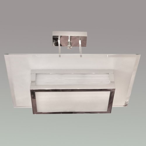 Ab ca. 1930 dominieren „reine“ Art Déco Lampen mit ihrer typischen, streng geometrischen Ausrichtung. Es tritt eine Reduzierung der Dimension der Motive ein. In den Dreißigern vereinfachen sich die Motive auf zweidimensionale, geätzte geometrische Muster. Diese einfachen, linearen Formen hatten für die Produktion der metallenen Lampenmonturen einen positiven Nebeneffekt; sie erleichterten die Herstellung mit Maschinen.